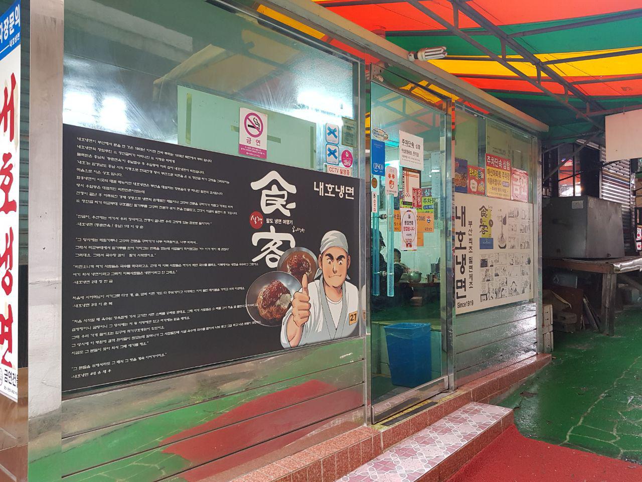 Now milmyun has become one of the main staple cuisines in Busan that has spread across the south-eastern province of Korea. Today's restaurant is Naeho Naengmyeon (Naeho Cold Noodle House) which was founded in 1919 in Busan. The restaurant had achieved great success from the outset, but hadn't re-located because the founder of this restaurant left the following will: